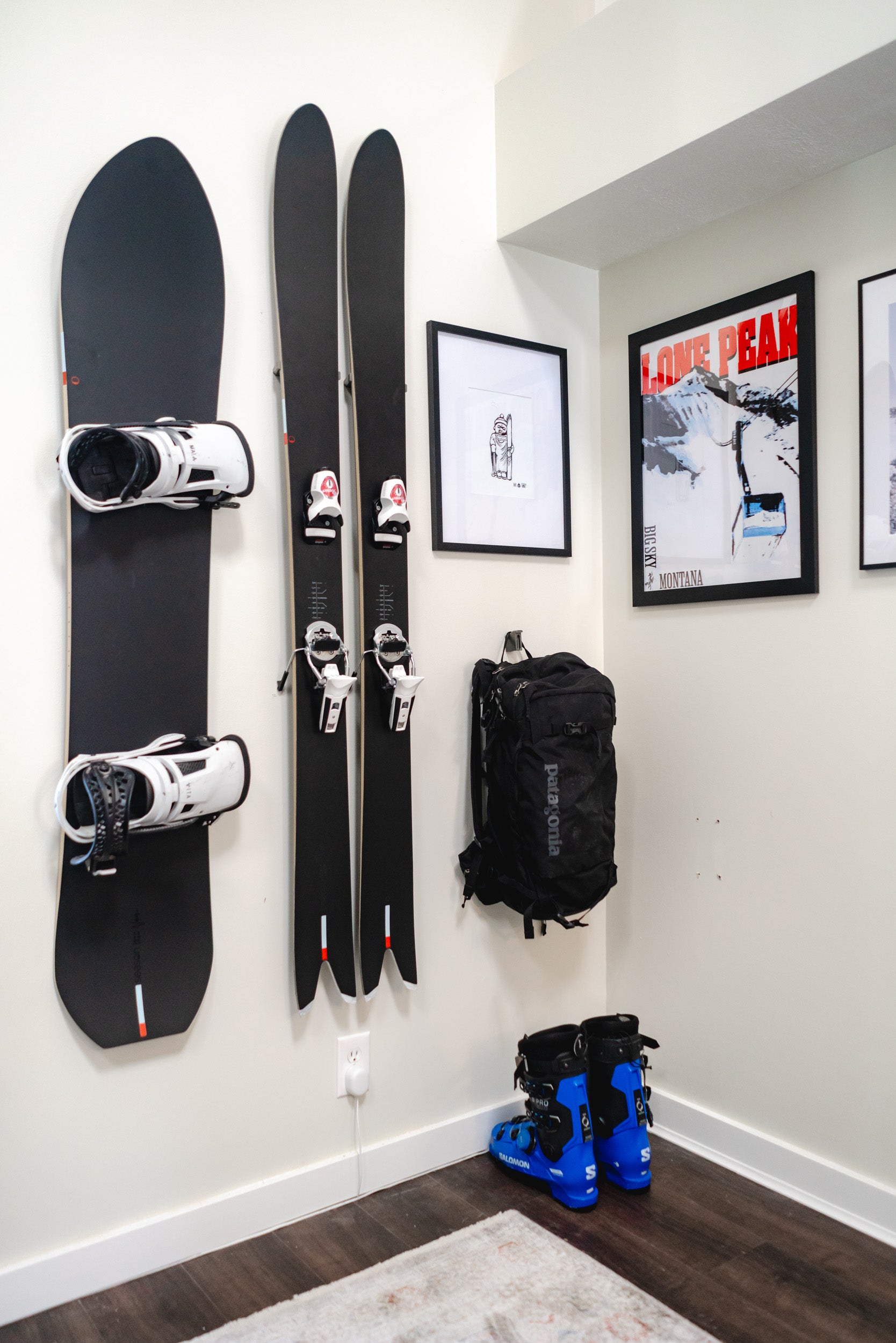 Sleek Aluminum Wall Mounts for All-Mountain and Powder Skis Hang like a coat rack
